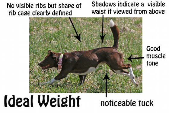 体重超过标准15%(如你的狗狗现在是40公斤那么多余的体重为6公斤,12公斤的狗狗可能有1.8公斤是超出来的) ,安全的减肥率为每周减1%。拿以上狗狗为例,大的那个一个月后应该减掉1.6公斤,小的那个0.48 公斤左右是正常的。算不清?去兽医专门的减肥服务咨询。狗狗减重达到标准后,好好观察,身材有型么?有没有腰,肚子瘦瘦的,能轻易摸到肋骨么?如果还是不能, 那么应该继续。如果它身材完美了,别又回到以前的坏习惯——尽管它现在可能比以前活跃爱动了也不行。每两周测下体重,监督它不要增回去!有些减肥餐有低卡路里,但是不会引起狗狗体重下降,所以 只要科学合理的喂食,体重不会回到以前的,向兽医咨询意见。