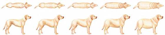 其实量体重以及对照狗狗品种体重表都不是最好的办法,因为每只狗的情况都不一样。唯一的方法是观察身材然后手检脂肪含量。 你的狗有没有大肚子?从上面看狗狗,能不能看到腰?身子是不是在肋骨后面变窄?能不能很容易地摸到它的肋骨? 没有腰,肚子又大又硬,肋腔厚厚的摸不着肋骨意味着需要采取行动!超重一般指超过正常体重的15%。